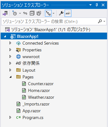 Blazorは主にシステムファイルとRazorファイル、cshtmlファイルから構成されます。